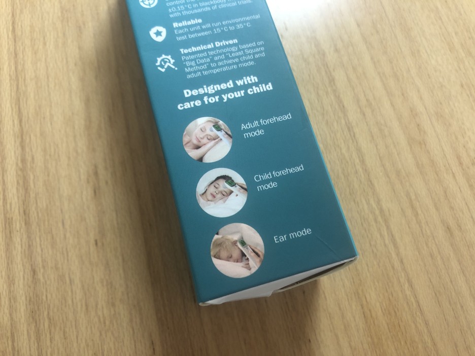 이마는 비 접촉식으로 성인의 이마를 측정하면 되고, 아기 모드는 아기에게 측정하면 됩니다. 성인이 아이모드로 놓고 측정하니 0.5도 정도 살짝 높게 나옵니다.
