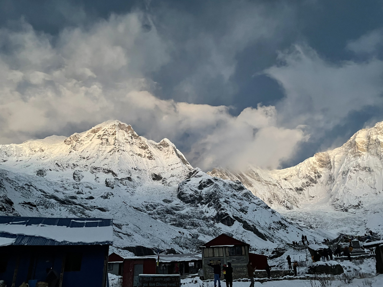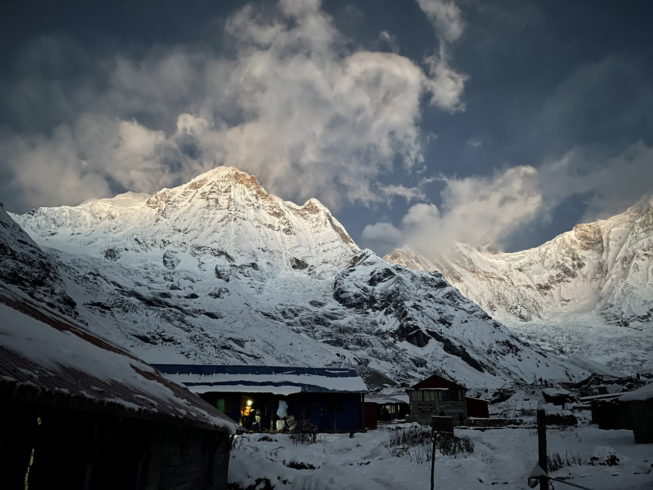 맥주 때문에 화장실을 가기 위해 새벽 밖을 나서니 별들이 참 많다. 그리고 시간이 지나자 어제는 구름에 가려져 못 보았던 세계 3대 미봉인 마차푸차레(물고기 꼬리, 내 눈엔 왜 하트처럼 보이지…) 봉우리가 얼굴을 비췄다. 그리고 구름이 정말 시시각각 달라져서 또 모습을 금방 감추기도 했다. 일행들은 사진 찍기에 바쁘다.