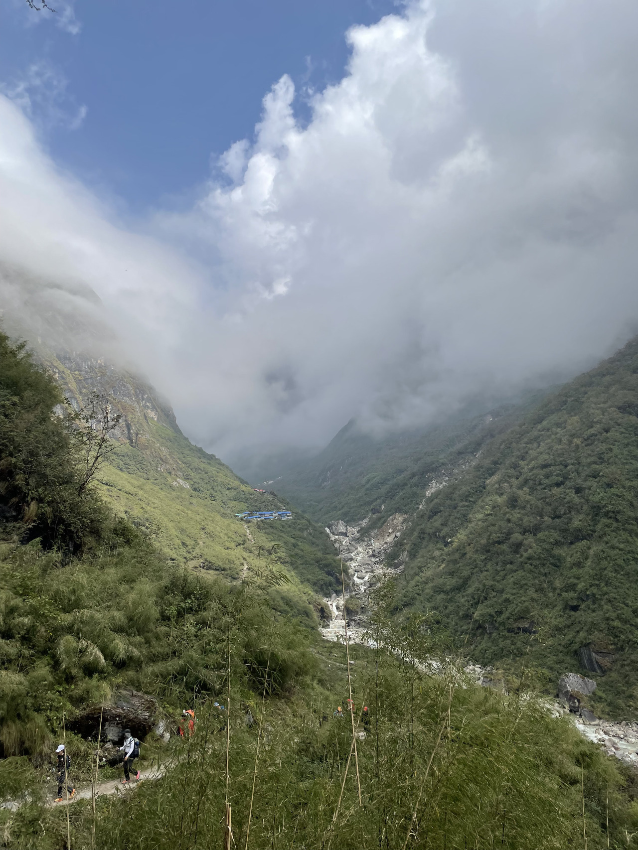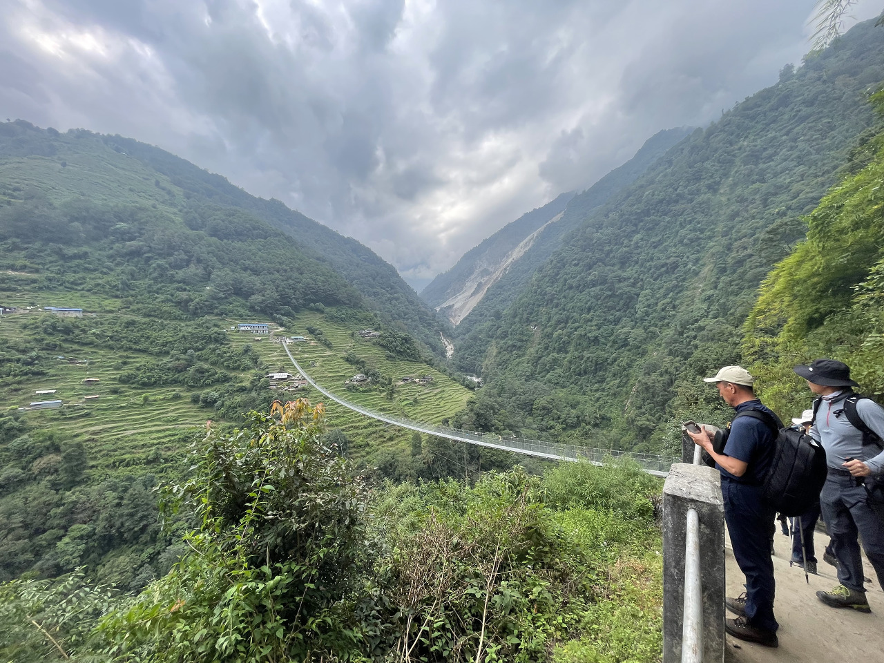 배낭을 메고 이제 첫 발을 내딛는다. 처음 마주한 300m 구름 흔들 다리...  엄청 흔들흔들린다. 만들어진지 얼마 안되었으며 다리가 없을 때에는 저만큼 내려갔다가 올라갔다고 한다. 지나고 보니 엄청 길다...