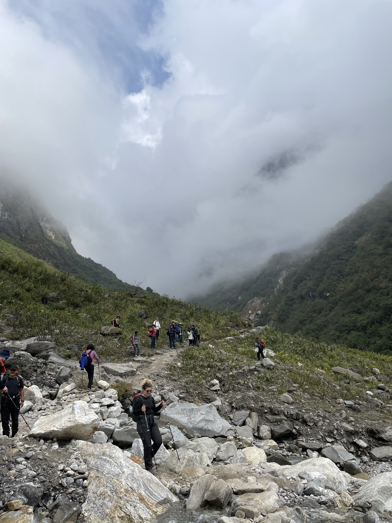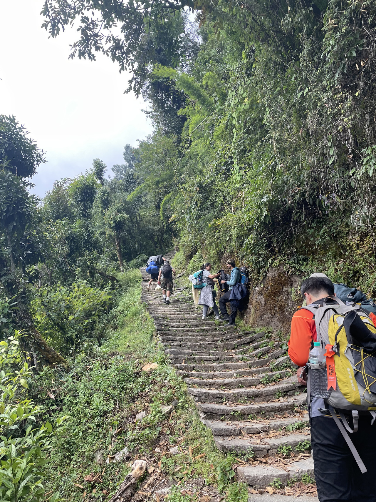 산행 중에 큰 짐을 메고 가는 짐꾼들이 참 많다. 우리들의 포터만 해도 대충 30kg의 짐을 메고 전체 일정을 함께 한다. 당나귀를 이용해서 운반해도 되지만 그렇게 되면 포터분들의 밥벌이가 날아가게 되니... 아무튼 감사한 마음을 가지고 걷자. 나중에 현지 가이드 분에게 물어보니 개인포터 고용비용은 $18라고 한다. 가이드는 $20.