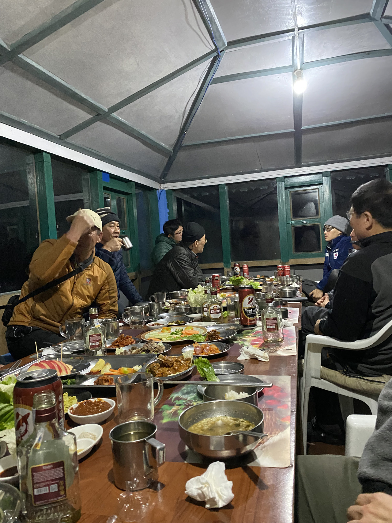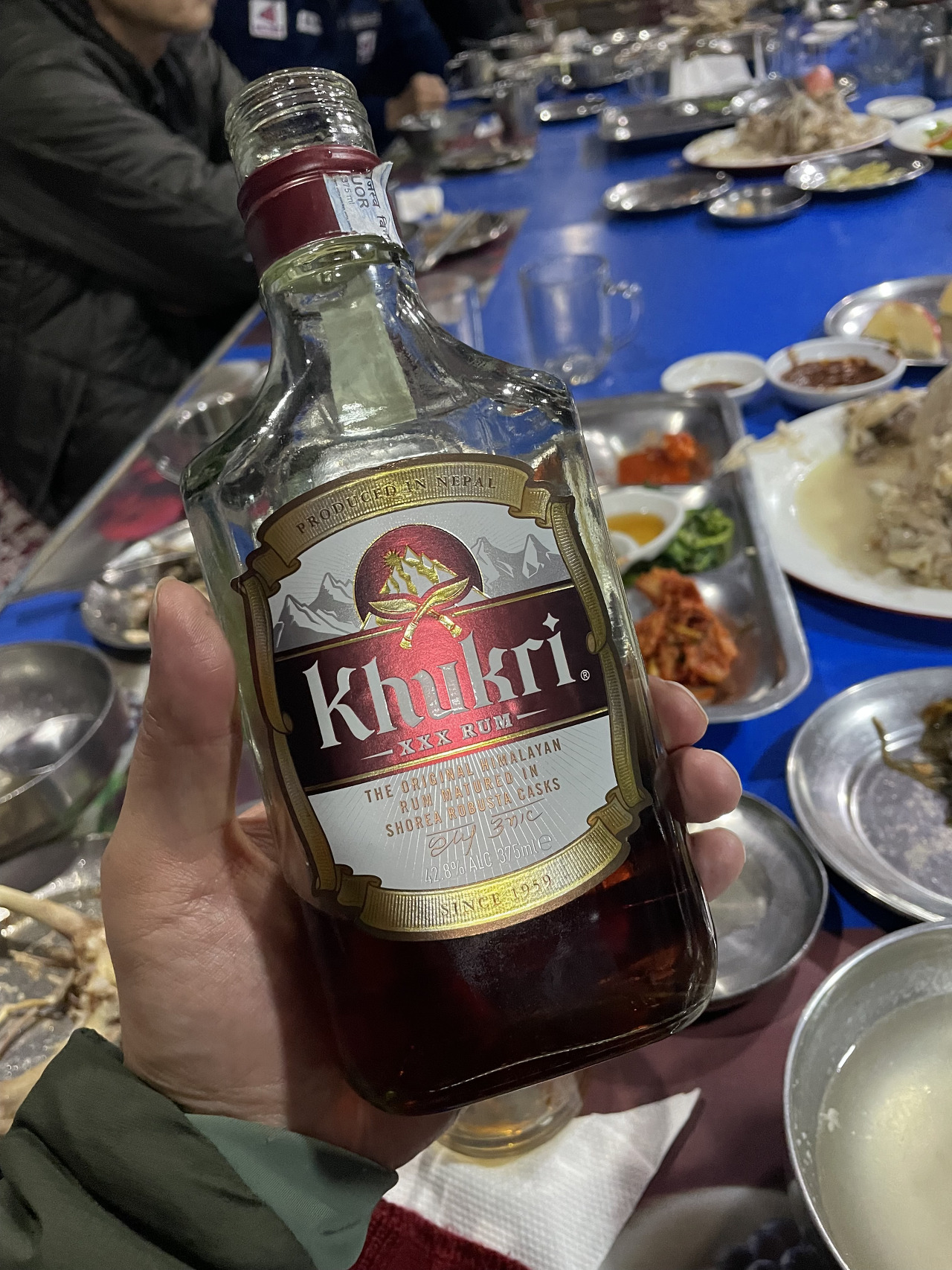 일행분이 또 나머지 소주를 꺼냈고, 또 다른 일행분이 네팔 전통 럼을 하나 꺼내서 또 반주로 곁들었다. 오늘까지만 마시자... ㅋㅋ 정말? ㅋㅋ