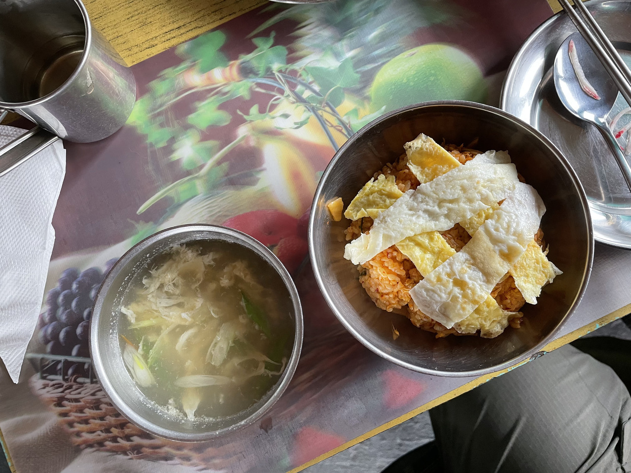 조금 내려오니 더워서 두꺼운 옷들은 벗는다. 올라왔던 길을 그대로 내려가기에 약간 심심한 면이 있긴 하다. 이전에 묵었던 데우랄리 숙소에서 김밥과 신라면으로 점심을 해결하고? 응? 김밥이 왜 여기서 나오니...?