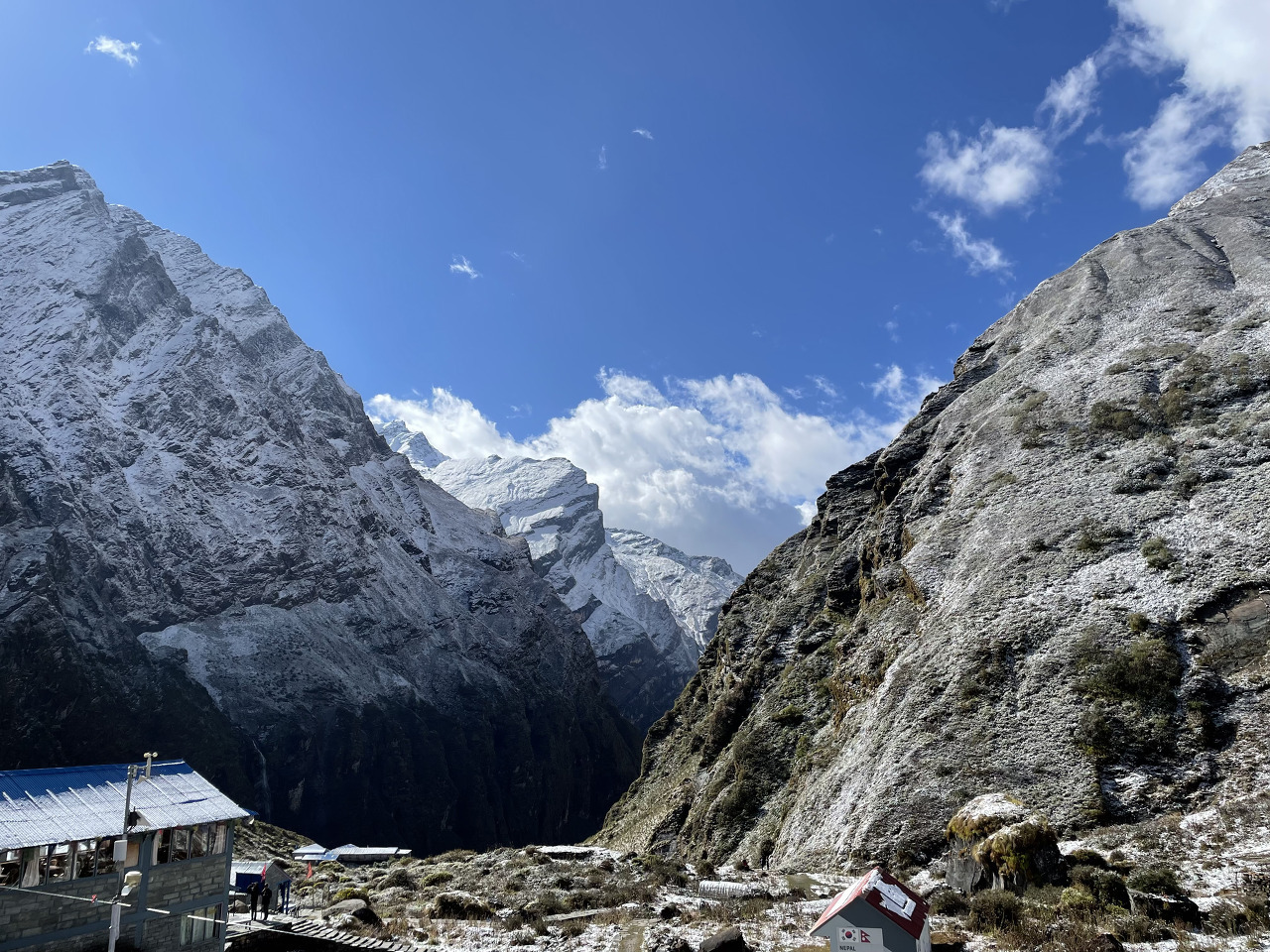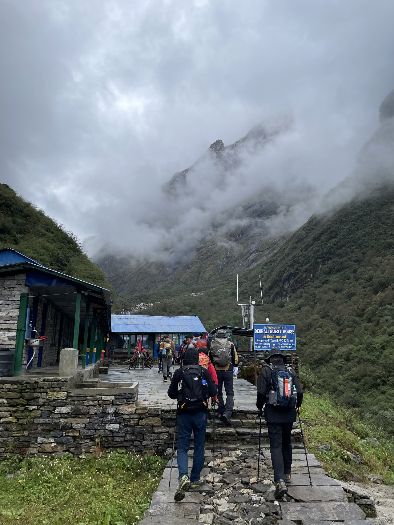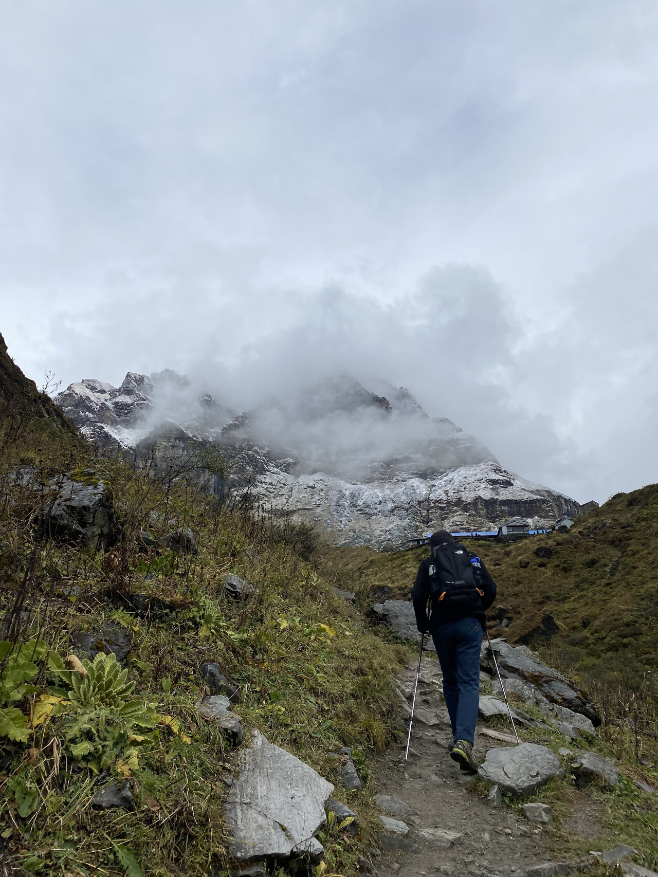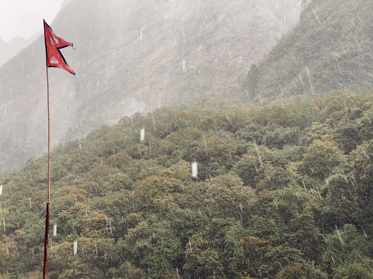 가면서 눈은 멈출 기세는 안 보이고 점점 심하게 함박눈으로 바뀌었다. 그래도 비가 아닌 게 어딘가. 눈에 가려져 안나푸르나 봉우리를 못 보고 걷는 게 아쉽긴 했어도 또 다른 경험을 맞이할 수 있어 좋았다.