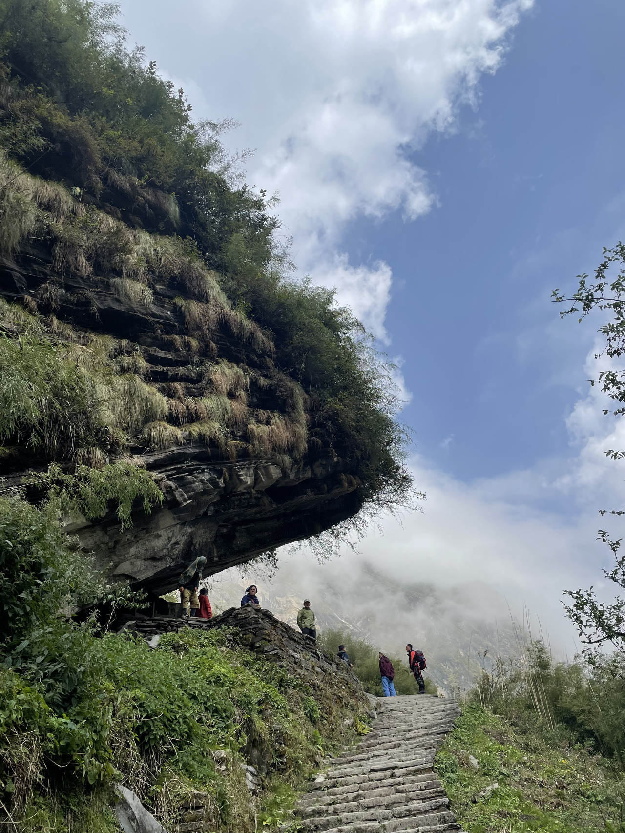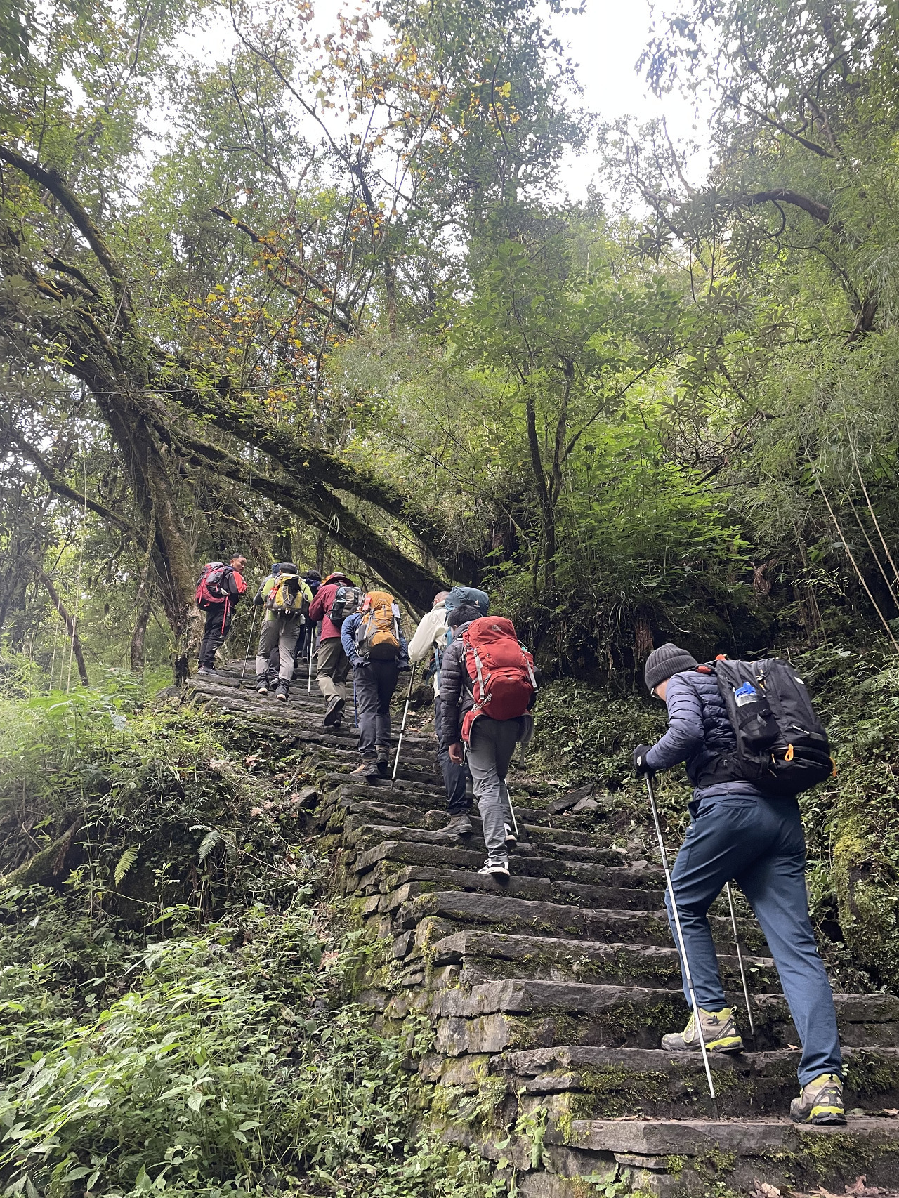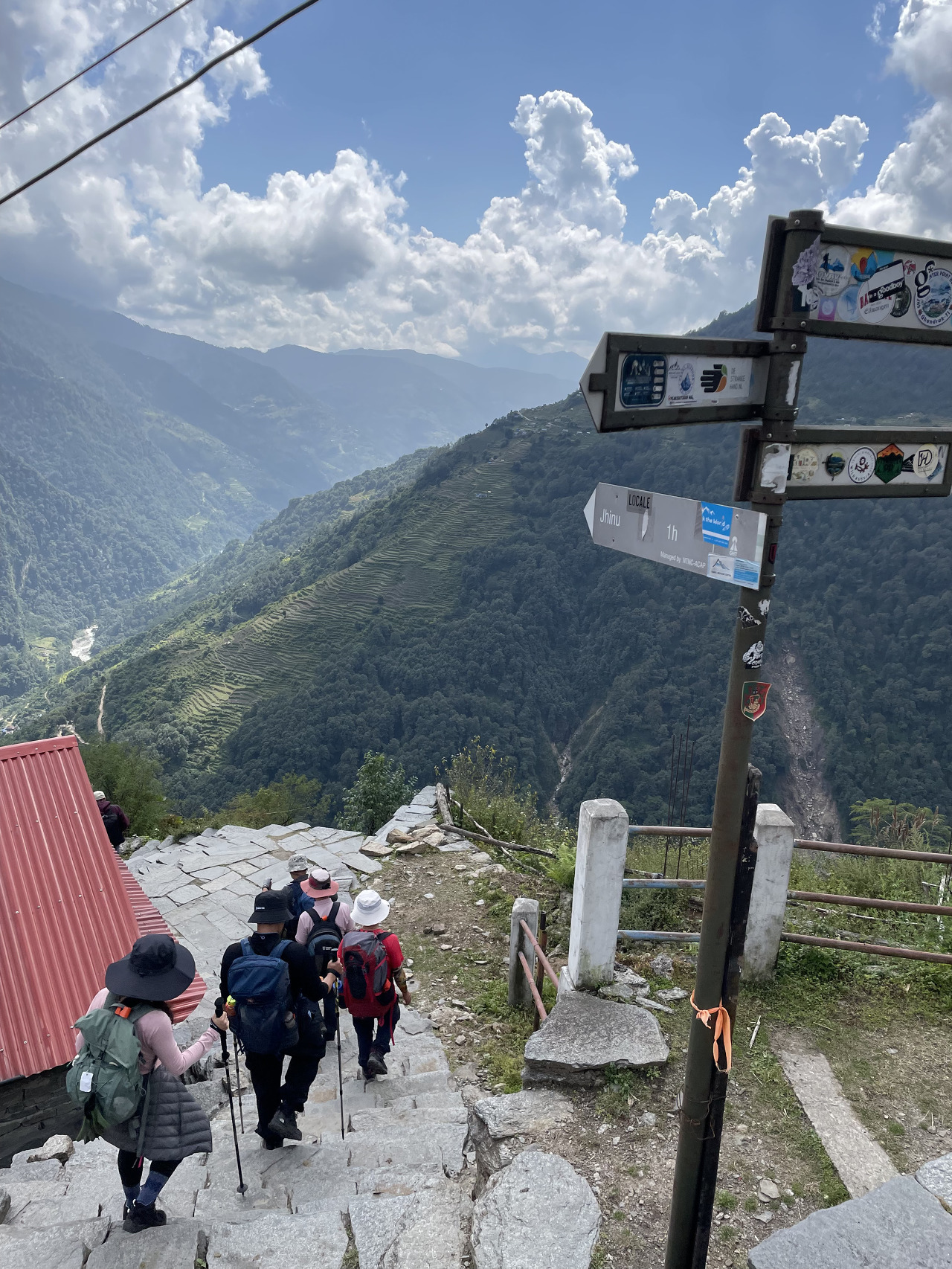 돌계단을 걷고 또 걷는다. 저 멀리 우리가 지나온 롯지도 작게 보인다.