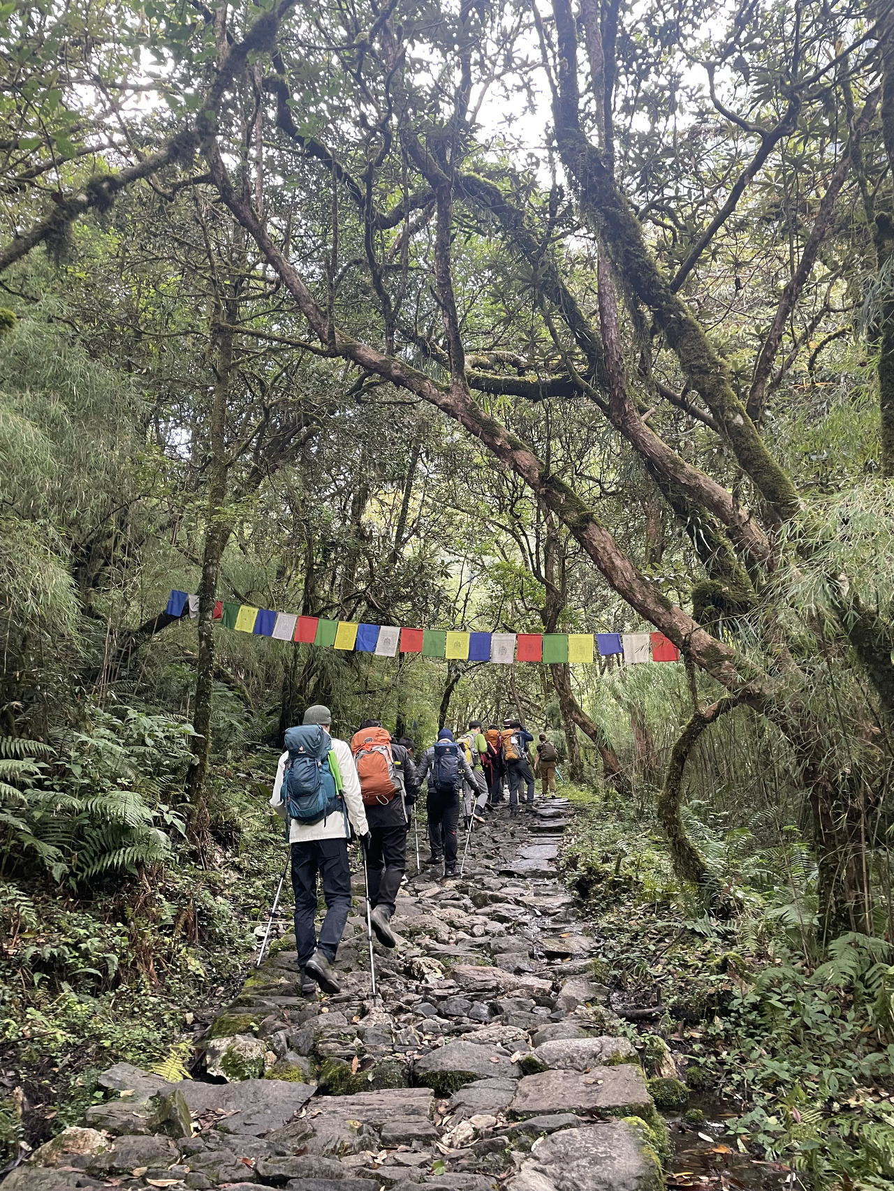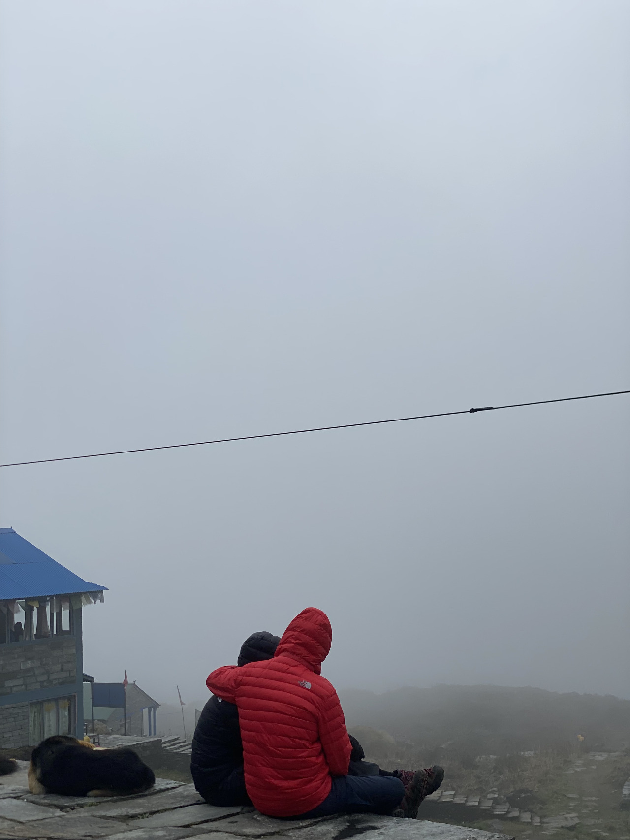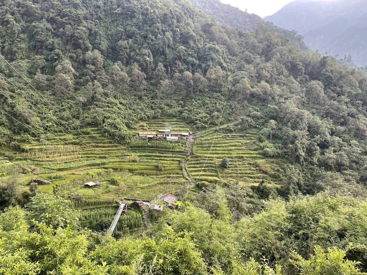 돌계단을 걷고 또 걷는다. 저 멀리 우리가 지나온 롯지도 작게 보인다.