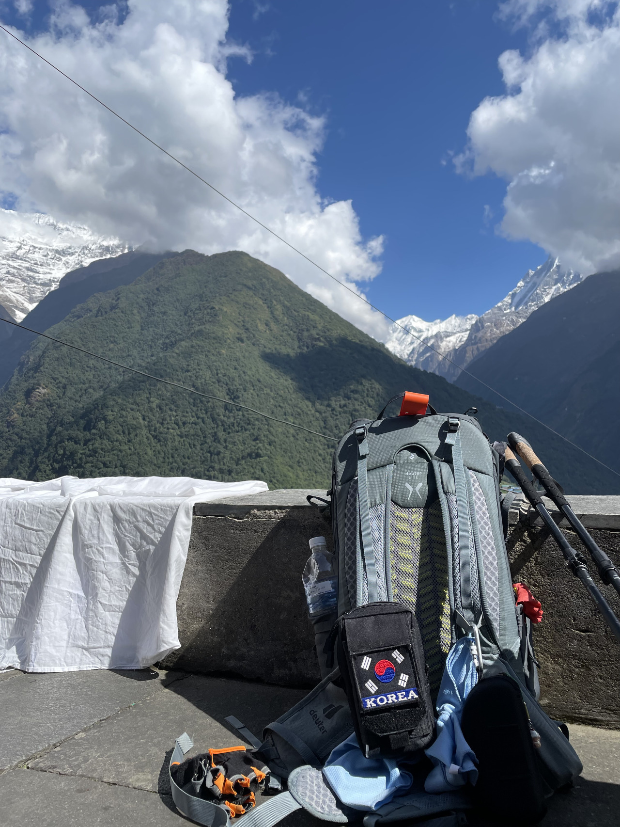 날씨가 추워서 인지 어제저녁 11시부터 1시간마다 깨서 시간을 확인했다. 아침에 일어나서 가장 먼저 날씨를 확인하니 엄청 날씨가 좋았다. 밖에 나가보니  모두들 뒤에 서있는 안나푸르나 설산 사진을 찍기 바빴다. 와…….