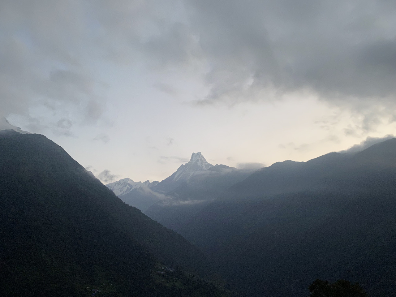 시차와 화장실로 인해서 새벽에 밖을 나가니 또 하늘에는 별이 많이 떠 있다. 그리고 마차푸차레는 좀 더 가까이에서 얼굴을 내밀었다. 난 왜 하트 모양 같지...