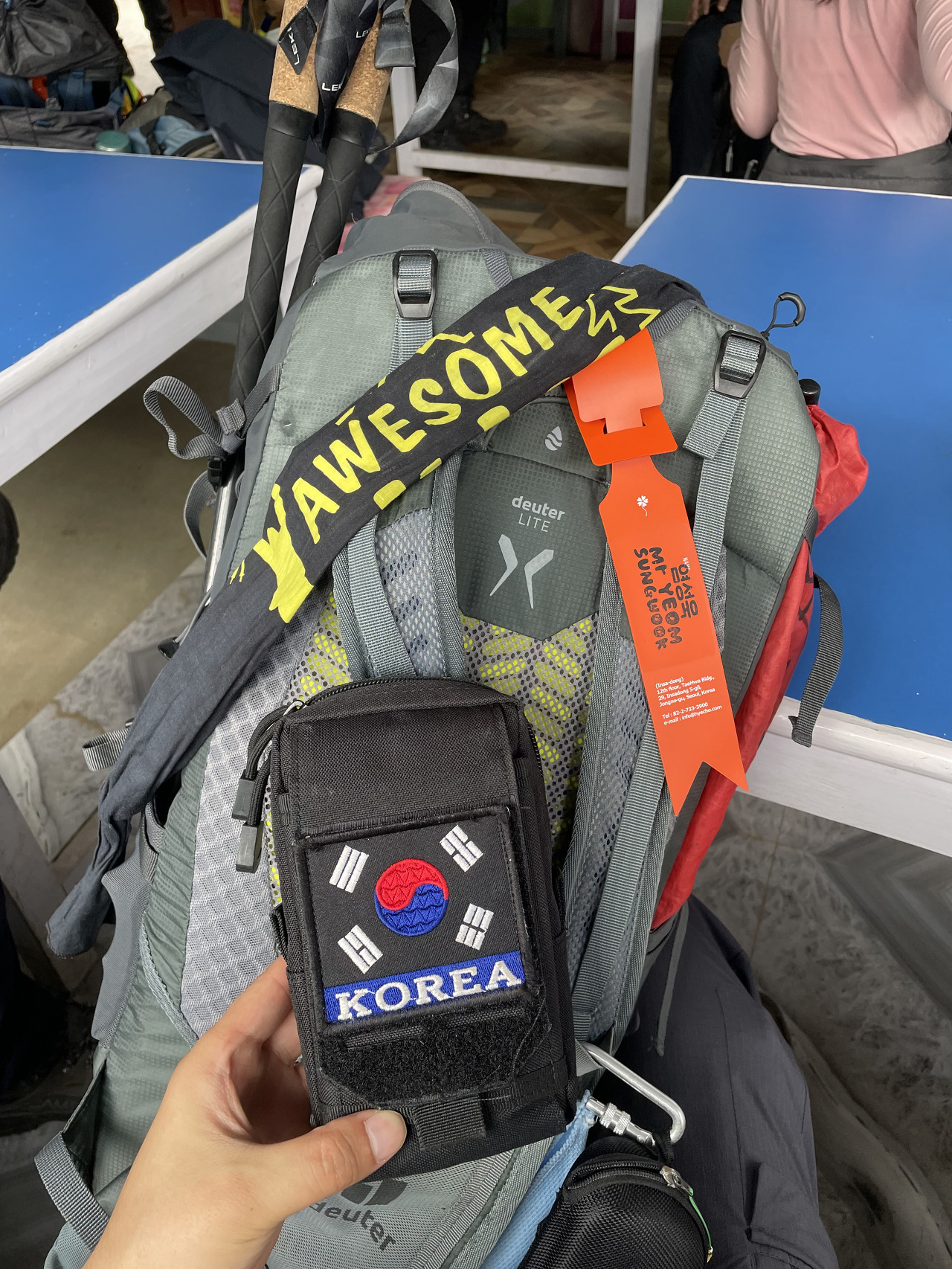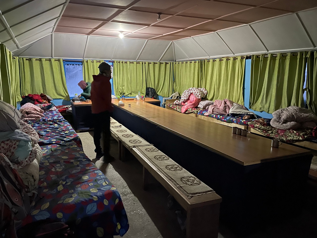 가이드들은 어디서 잘까 궁금했었는데 롯지 식당 의자에 이불 등을 펴고 잔다. 사실 여기가 가장 따뜻하다.