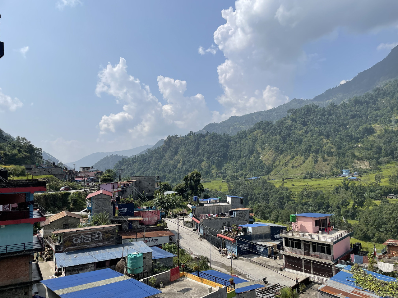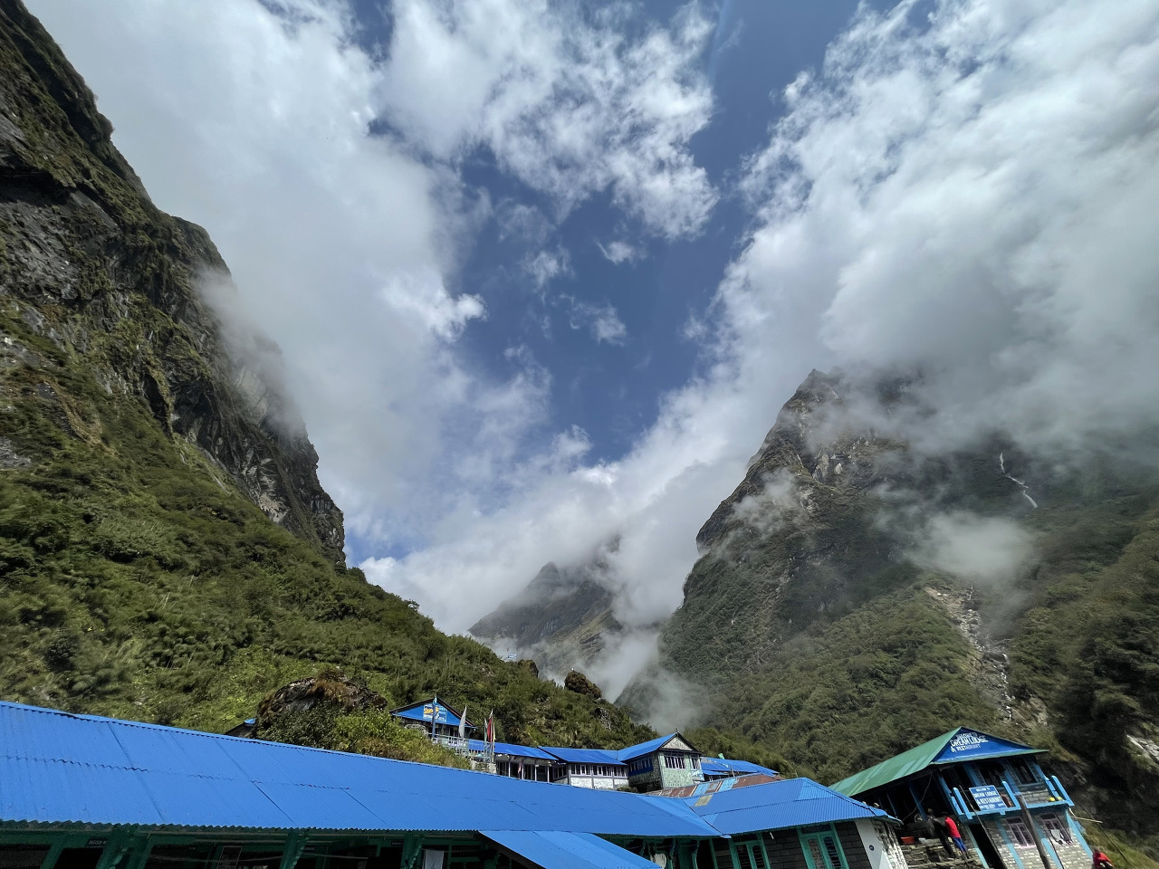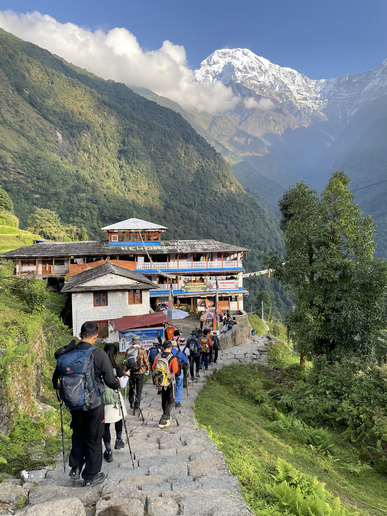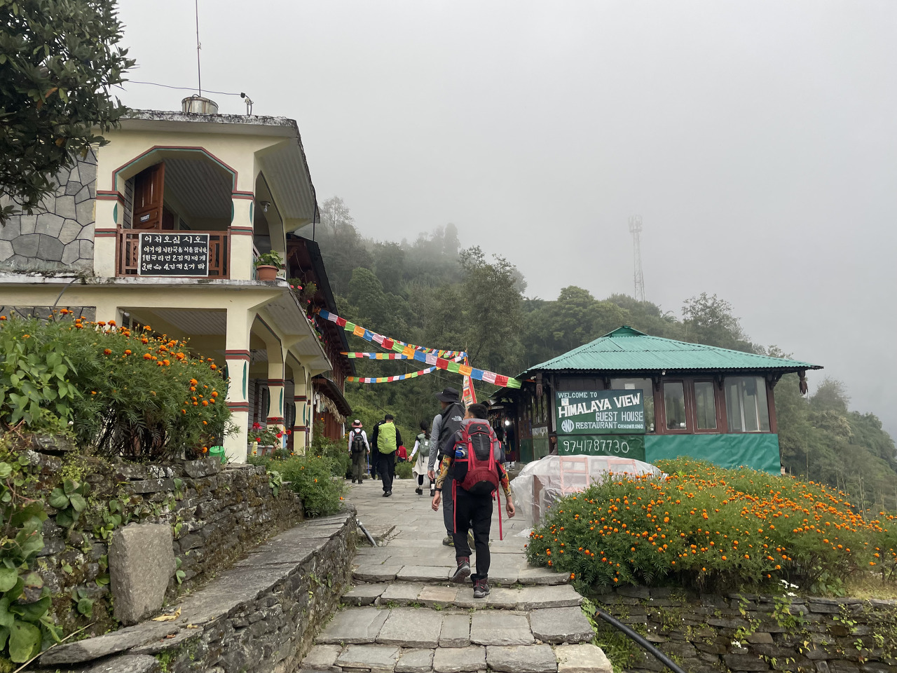 첫날인 만큼 많이 걷지 않았다. 2시간여를 업힐을 오르며 아주 힘들 때쯤 어? 하는 순간, 고도를 400미터를 올리고 나니 첫 도착지인 촘롱에 도착했다. 가장 큰 마을이며 많은 롯지와 식당들이 즐비하다.