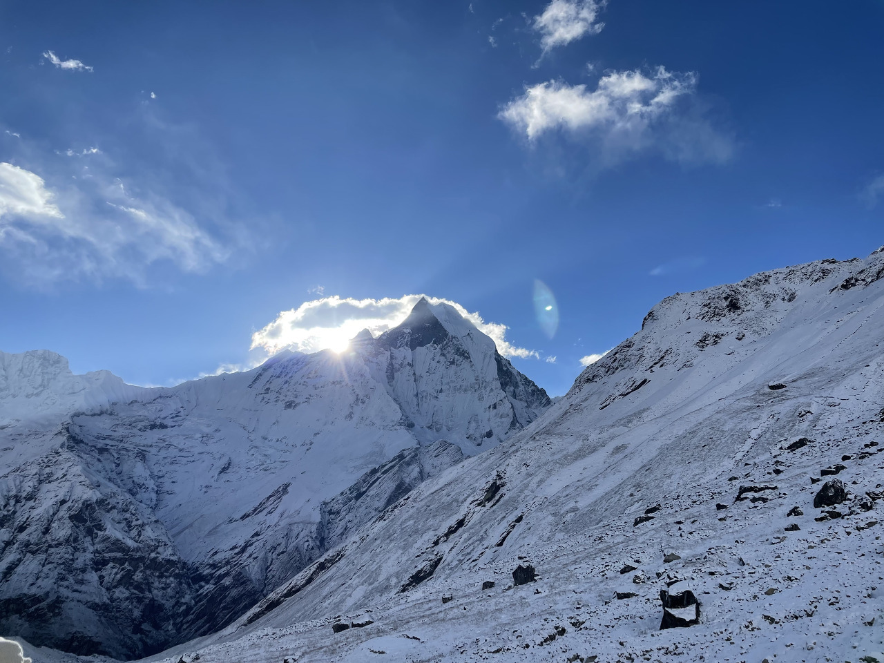 앞뒤로 펼쳐진 설산은 정말 가히 예술이다. 이래서 다들 다시 ABC나 히말라야를 찾나 보다.