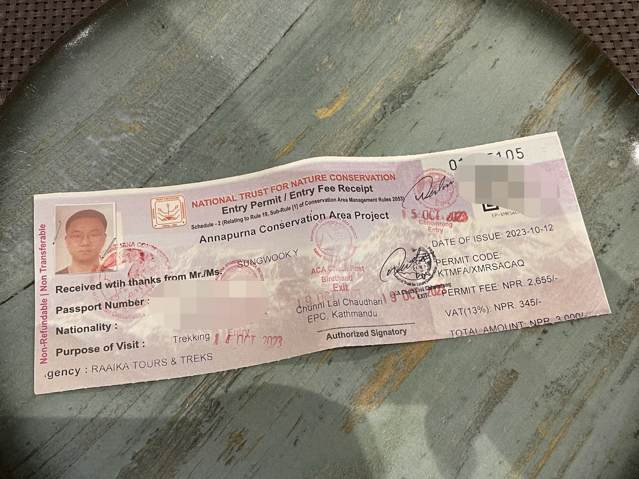 이후 우리는 환전소가 있는 곳으로 이동해서 5박 6일간 산에서 사용할 돈을 환전을 했다. 간단한 마실거리와 충전비용, 와이파이 비용만 지불하면 되기에 2명이서 $60 정도만 환전을 했다. 환율은 대충 루피당 10을 곱하면 한국돈으로 계산이 된다.
