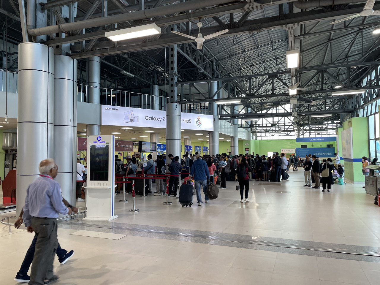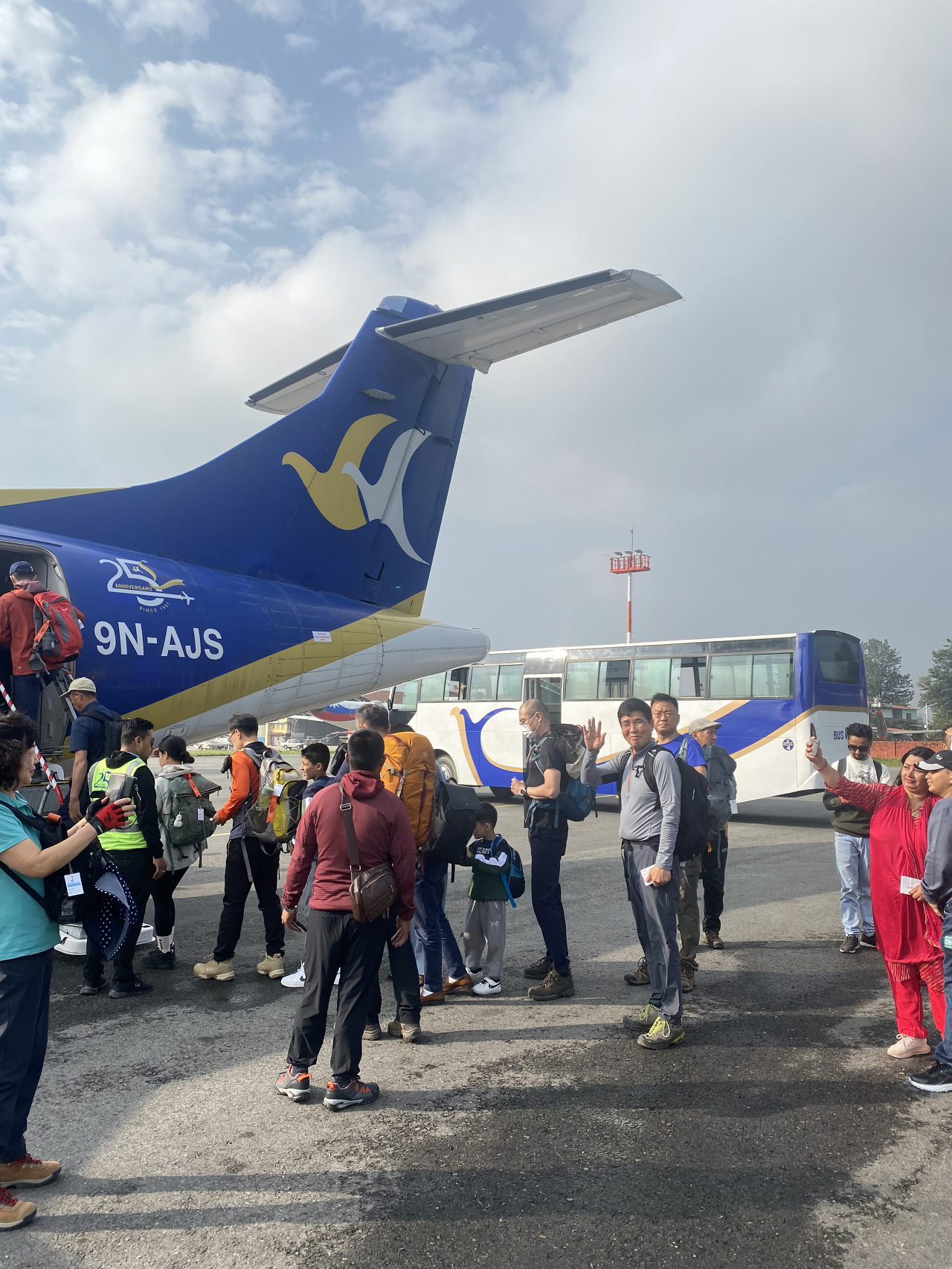 작은 프로펠러 비행기를 타고 30분여 날아가서 포카라 공항에 도착했다. 중간에 창밖 너머로 안나푸르나 봉우리가 보인다. 프로펠러가 멈췄어요!? 한국인 가이드 분께서 공항이 신공항으로 바뀌고 많이 좋아졌다고 한다.