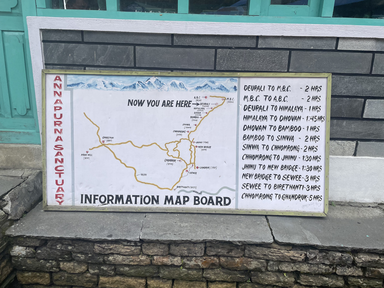 A.B.C.는 전 세계 산악 트레커들의 버킷 리스트 1순위로 꼽는다. 눈앞에 펼쳐진 설산의 아름다움이 가져다주는 광활한 느낌과 난 히말라야를 올라갔어!라는 정복감을 줘서 그런가? 싶다.  일단 난이도가 무지 낮다. (정말???) 일반사람들은 히말라야라고 하면 에베레스트 등정을 하는 것으로 착각하지만 ABC트레킹은 말 그대로 트래킹이다. 그냥 조. 금. 만. 걷기만 하면 된다. 그래서 그런지 어디 북한산에 온 듯 한국사람들도  많다.
