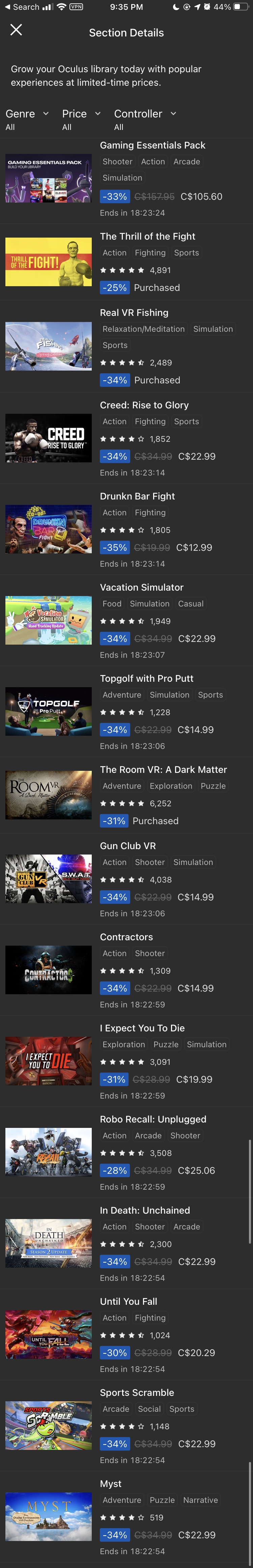 오큘러스 퀘스트 24시간 앱 세일!