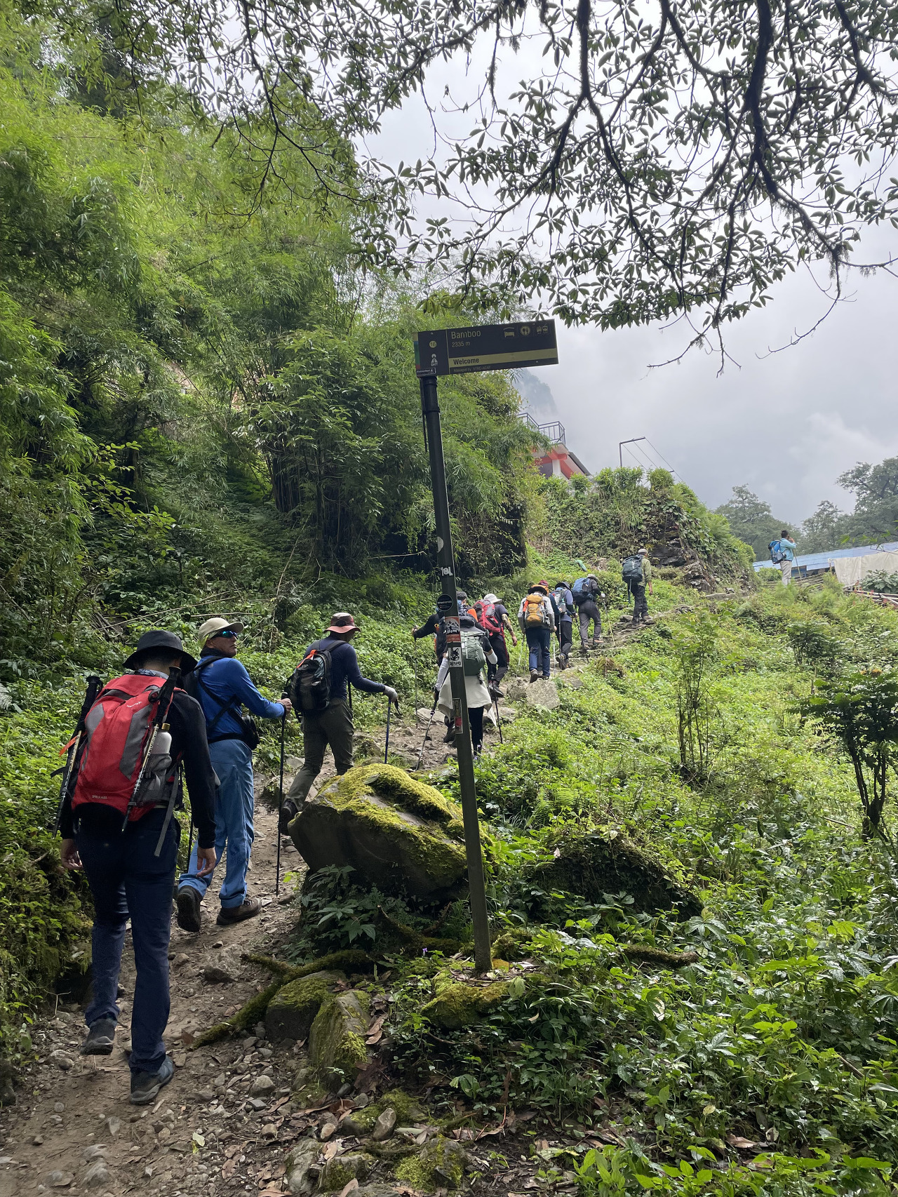 첫날인 만큼 많이 걷지 않았다. 2시간여를 업힐을 오르며 아주 힘들 때쯤 어? 하는 순간, 고도를 400미터를 올리고 나니 첫 도착지인 촘롱에 도착했다. 가장 큰 마을이며 많은 롯지와 식당들이 즐비하다.
